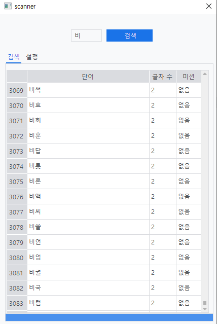- 단어 검색을 기존의 단어만 출력하는 방식에서, 글자 수와 미션 글자까지 출력하여 더욱 편리하게 이용할 수 있도록 개선하였습니다.